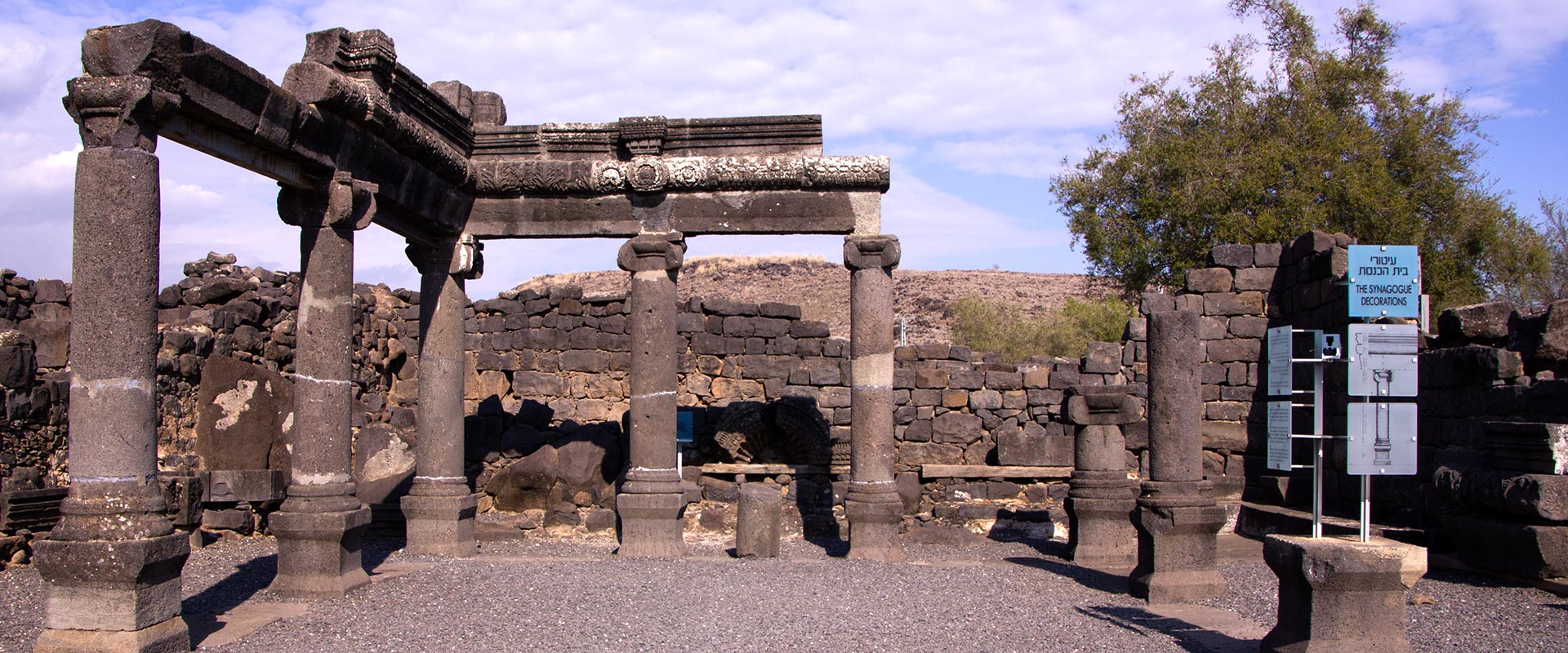 The ruins are spread over an area of 100,000 m2 and subdivided into five separate quarters, with a synagogue is in the the centre. The ancient Synagogue was built with black stones and decorated with ancient Jewish decor elements. In 1926, archaeologists discovered and massive stone chair, the “Seat of Moses,” carved from a basalt block. According to the New Testament, this is where Jesus read the Torah(Matthew 23:1-3) in Saturday.